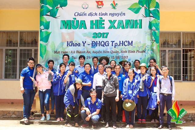 và tặng quà cho chiến sĩ tình nguyện tại mặt trận Hớn Quản Chiến dịch thanh niên tình nguyện mùa hè xanh sinh viên Khoa Y, ĐHQG TP. Hồ Chí Minh diễn ra từ ngày 29/7 đến 12/8/2017 tại 3 ấp của xã Thanh An. Trong 2 tuần diễn ra Chiến dịch, các chiến sĩ tình nguyện Khoa Y đã thực hiện nhiều công trình, phần việc thiết thực cho nhân dân địa phương như: Đóng “Tủ sách thiếu nhi” và quyên góp các đầu sách thiếu nhi tại ấp Bù Dinh; xây dựng cột cờ Tổ Quốc, tu sửa nhà Văn hóa ấp An Sơn với tổng kinh phí hơn 7 triệu đồng, trong đó ấp đối ứng 1.418.000 đồng; hoàn thành công trình thanh niên “Thắp sáng đường quê” tại ấp Xa Cô với tổng kinh phí 13.431.000 đồng, trong đó nhân dân ấp Xa Cô đối ứng 2.686.000 đồng; tu sửa hai nhà rông văn hóa Bù Dinh và Xa Cô; tặng quà cho 50 gia đình có hoàn cảnh khó khăn tại bốn ấp Bù Dinh, An Sơn, Xa Cô, Tư Ly; tổ chức “Lớp học tình thương” cho hơn 300 thiếu nhi tại các ấp, diễn ra từ thứ hai đến thứ bảy hàng tuần; tư vấn và khám sức khỏe, cấp phát thuốc miễn phí cho hàng trăm hộ dân; phát quang, làm đường, khơi thông cống rãnh; giao lưu thi đấu bóng đá và bóng chuyền…
